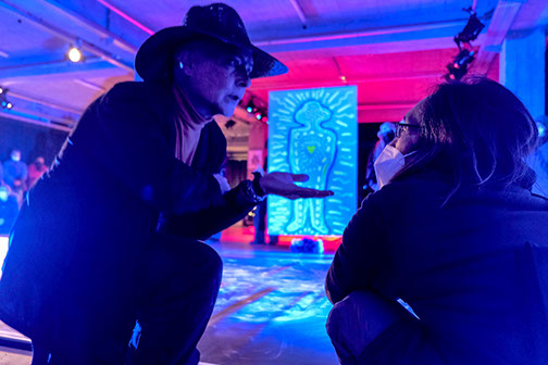 Die Zuschauer*innen bewegen sich frei durch den Raum; sie werden selbst Teil der Installation und Betrachter*innen. Töne und Geräusche aus dem täglichen Leben bilden einen atmosphärischen Klang, der den Raum zu einem ganzheitlichen Erlebnis macht.
