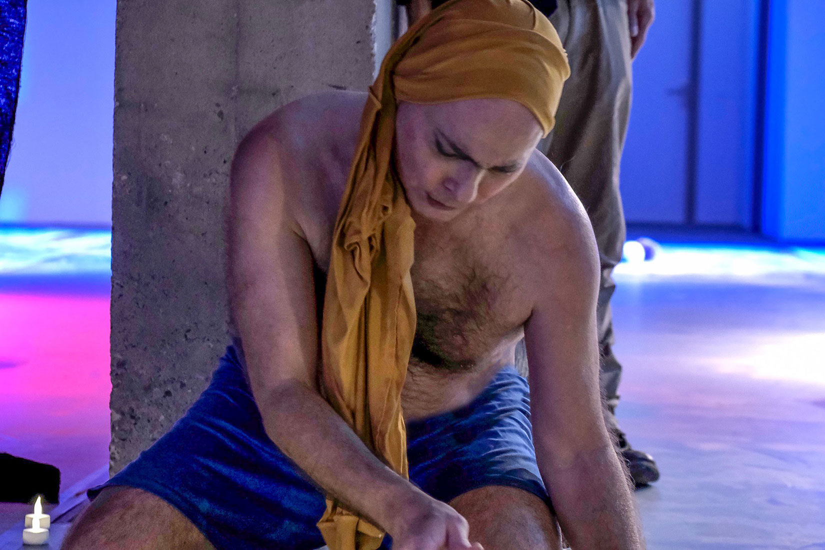 Ein Performer und ein Tänzer setzen sich mit der eigenen Fragilität auseinander und entwickeln Wege der Antifragilität, der beständigen Stabilisierung.